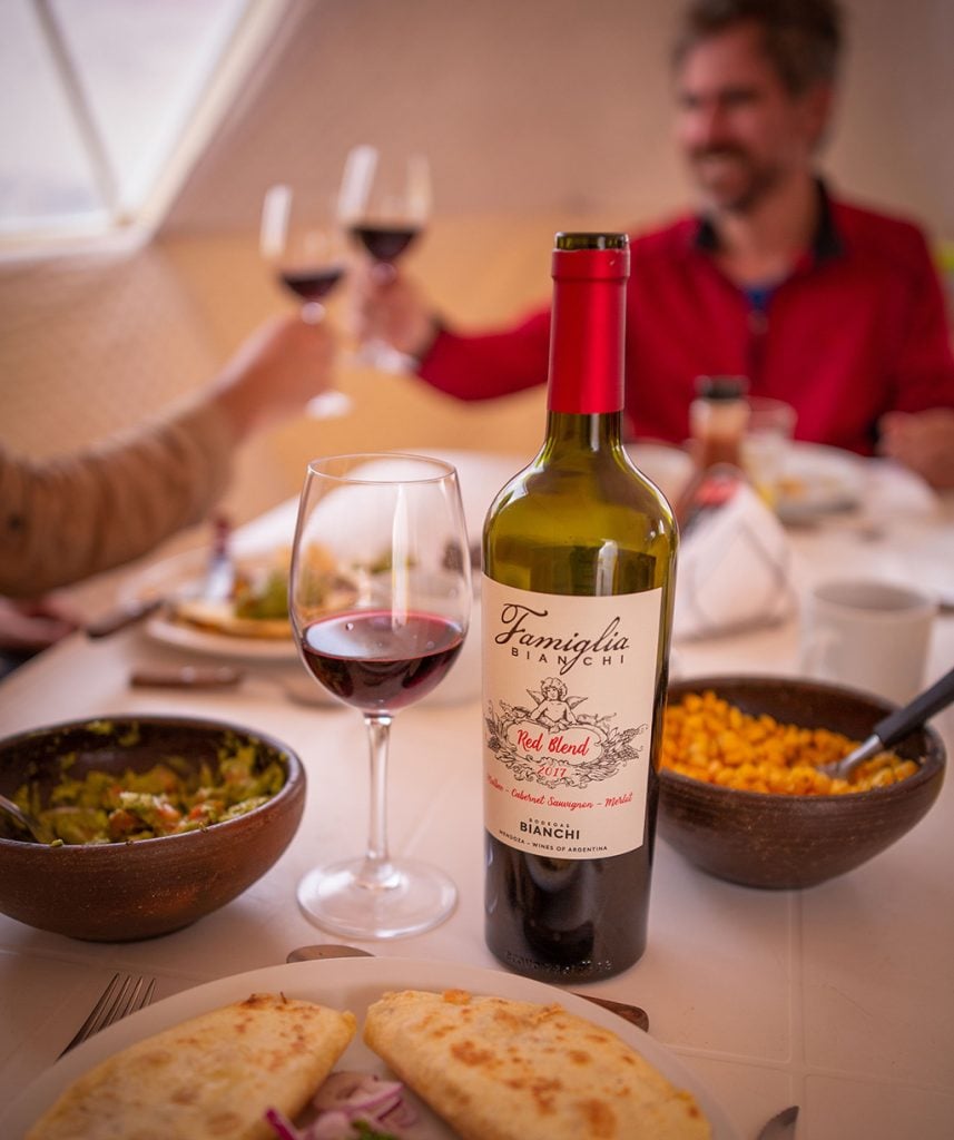 Con momentos como este en mente es que nos enorgullece anunciar nuestro flamante acuerdo con Bodegas Bianchi, una de las casas vitivinícolas más prestigiosas de la Argentina. Esta novedosa sociedad pone a disposición de los montañistas que acuden al Aconcagua los productos premium de la bodega mendocina. Se trata de los vinos tintos, blancos y espumantes de la línea “Famiglia Bianchi”, que estarán disponibles en los campamentos base de Confluencia, Plaza de Mulas y Plaza Argentina, en carpas domo especiales.